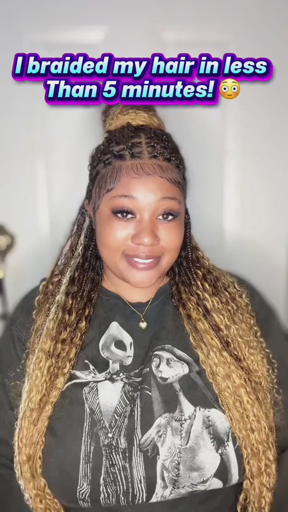 Triangle Base Full Lace Tangleless Human Hair Boho Curls Knotless Boho Box Braided Wig 36"(US only)