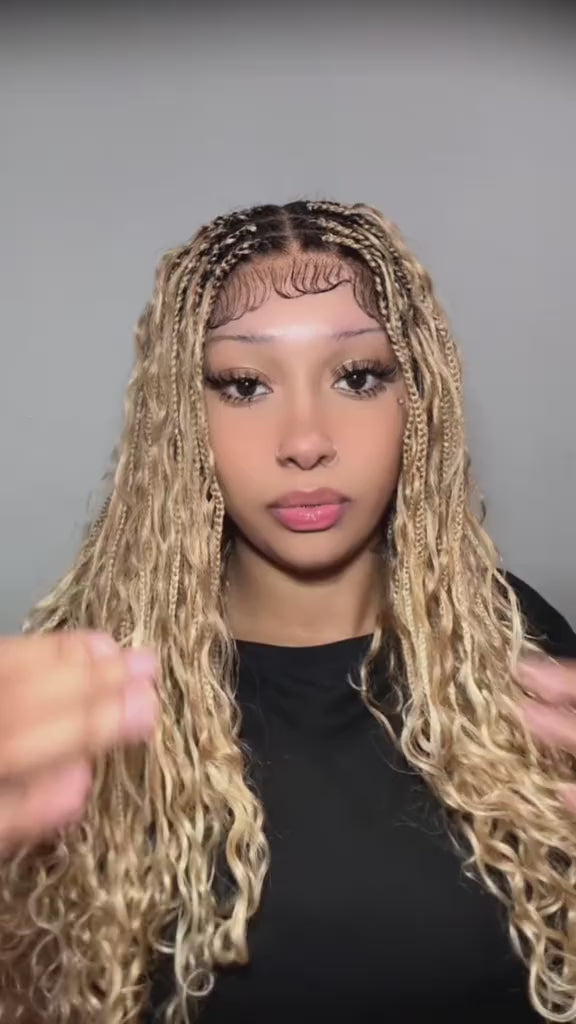 Pre Bleached 613 Blond HD Full Lace Human Hair Boho Curls 36" Knotless Boho Box Braided Wig