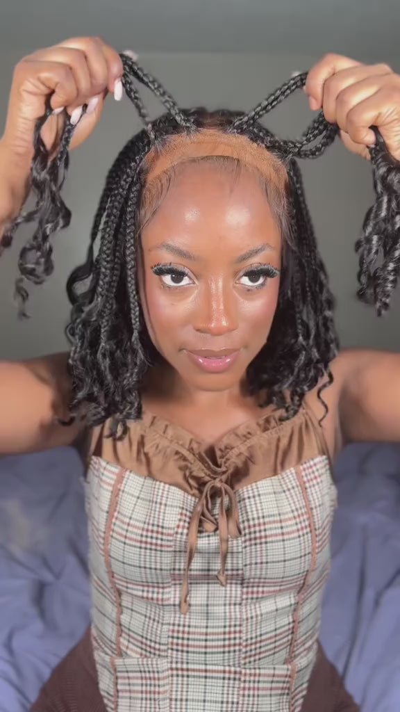Nina - Short Pre Bleached Swiss HD Full Lace Knotless Box Braided Wig With Human Hair Curly Ends