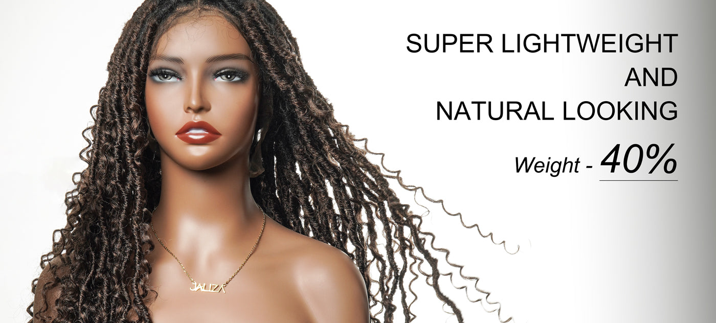 Salon-level Knotless Boho Locs HD Full Lace Human Hair Boho Curls 80 Strands Braided Wig