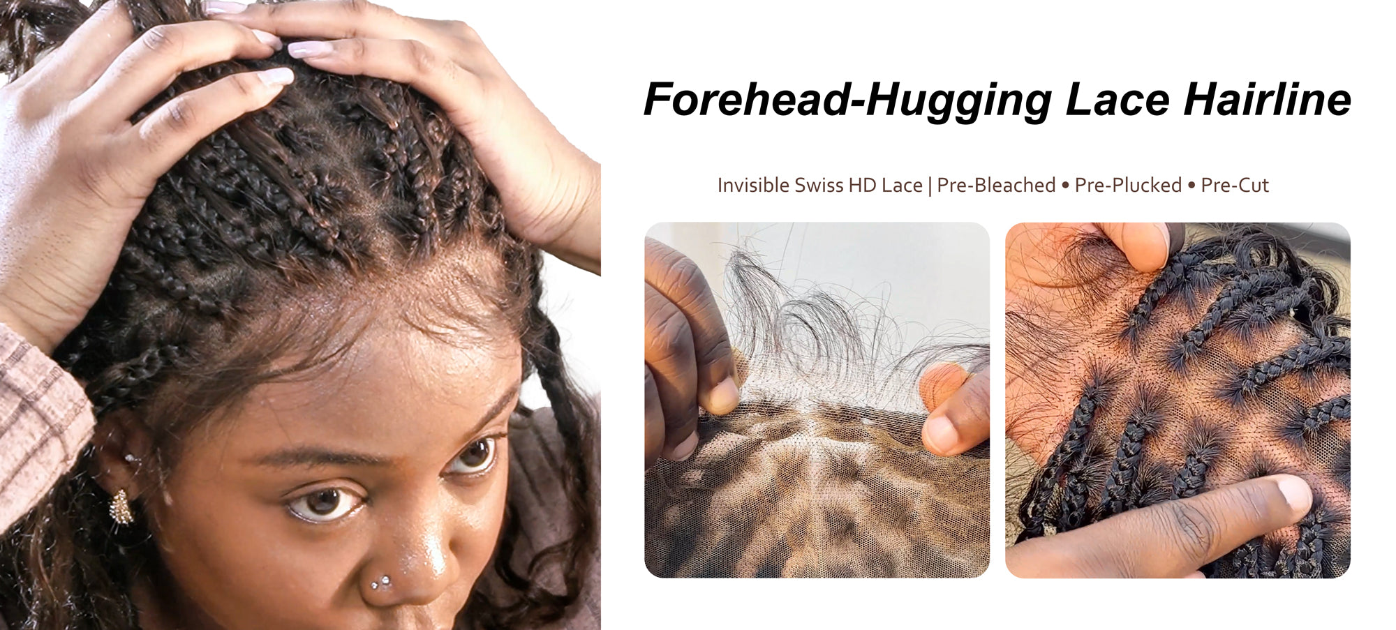 Vivi 16" - JALIZA Slip-On™ Glueless Swiss HD Full Lace Lightweight Version Human Hair Boho Box Braided Wig With C Cap Design And Stretchable Lace